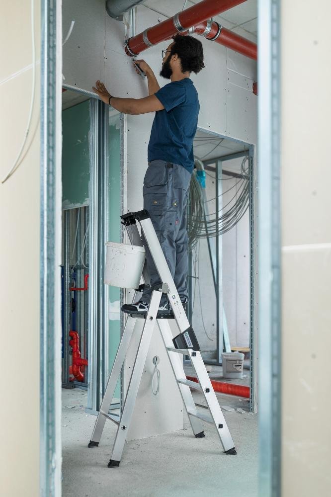 Produktinformationen "Alu-Stehleiter 4 Stufen Gesamthöhe 0,91 m Arbeitshöhe bis 2,95 m"