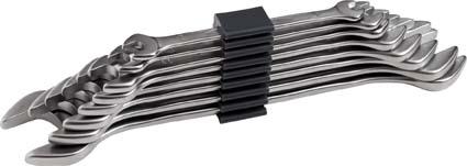 Inhalt: 8 Doppel-Maulschlüssel 6 x 7; 8 x 9; 10 x 11; 12 x 13; 14 x 15; 16 x 17; 18 x 19; 20 x 22 mm.