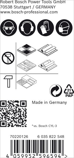 Hochpräzises Bohren in verschiedene Materialien! Präzises Anbohren von Löchern dank einer speziell konzipierten Zentrierspitze Moderne Baustellen erfordern das Arbeiten mit vielen verschiedenen Materialien und man weiß nie, was man als Nächstes bohren muss. Es kann schwierig und zeitaufwendig sein, den richtigen Bohrer zu finden – es sei denn, du hast den EXPERT Multi Construction-Bohrer. Der Bosch EXPERT CYL-9 Multi Construction-Rundschaftbohrer darf in keinem Werkzeugkasten fehlen: Man kann jede Arbeit präzise erledigen und verliert keine Zeit mit der Suche nach dem richtigen Bohrer. Präzises Bohren ist mit Bosch Centering Geometry noch einfacher