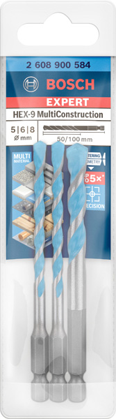 EXPERT HEX-9 MultiConstruction Bohrer-Set, 5/6/8 mm, 3-tlg.