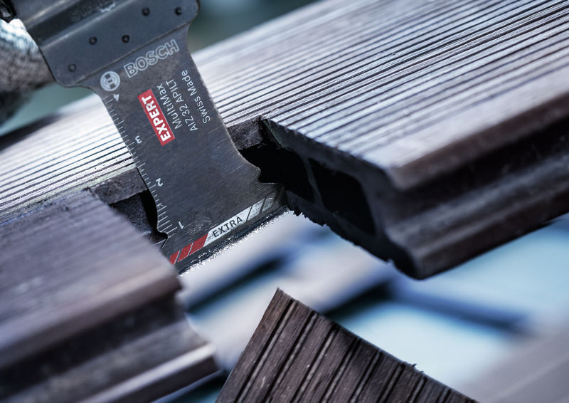 Lange Lebensdauer beim Schneiden von Holz mit Nägeln und abrasiven Materialien! Zusätzliche Beschichtung macht Carbide härter Ein Blatt für Multifunktionswerkzeuge, mit dem du hervorragende Schnitte in verschiedensten Materialien machen kannst, erleichtert das Arbeiten erheblich. Darum haben wir das EXPERT AIZ 32 APILT MultiMax-Tauchsägeblatt entwickelt. Mit ihm kannst du präzise Schnitte und Tauchschnitte in Holz mit Nägeln, Ziegelstein und andere Verbundwerkstoffe und abrasive Materialien machen – effizient und mühelos. Das dünne, lange Blatt des EXPERT AIZ 32 APILT MultiMax-Blatts ist außergewöhnlich langlebig und ermöglicht Tauchschnitte mit einer Tiefe von bis zu 45 mm. Die konischen Carbide-Zähne mit dem innovativen Curved-Tec-Profil sind robust und scharf. Sie sind dafür ausgelegt, Späne effizient zu entfernen und Hitzeverfärbungen zu reduzieren – insbesondere beim Schneiden in Holz. Überragende Lebensdauer dank Bosch Carbide Technology