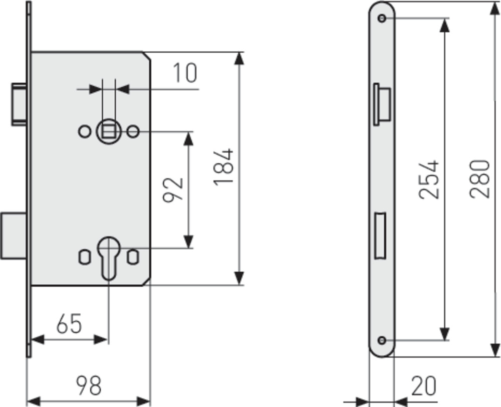 Einsteckschloss für Haustüren ESHT PZ L S 65 92 20 SB