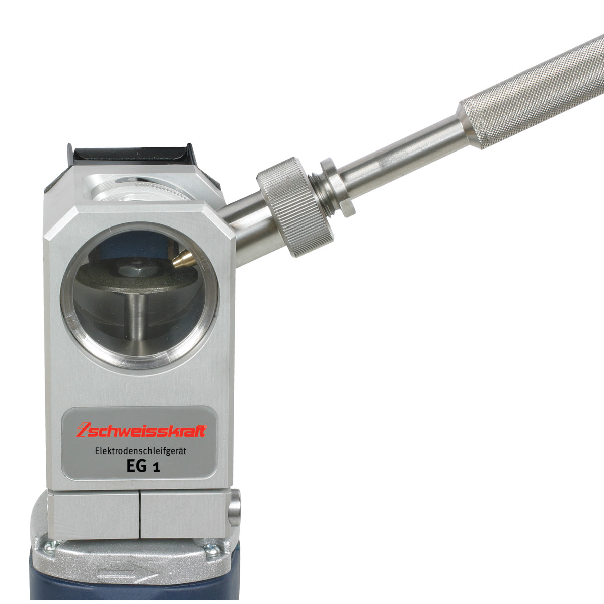 - Auch zum Anschleifen von kurzen Elektroden (bis 15 mm) z. B. für Orbitalschweißanlagen, erforderliche Spannzangen als Zubehör erhältlich
