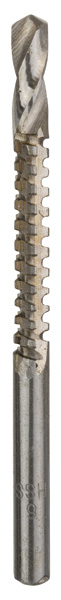 Der HSS-Fräsbohrer, der Löcher bohrt und Konturen fräst Die Bohrerspitze besteht aus einen Spiralbohrabschnitt gefolgt von einem Fräsabschnitt und einem Spanzerkleinerer. Dieser Bohrer ist für Holz, Kunststoff, Metallblech und andere dünne Materialien geeignet. Auch ermöglicht die Bohrspitze mit Kreuzanschliff perfektes Zentrieren.