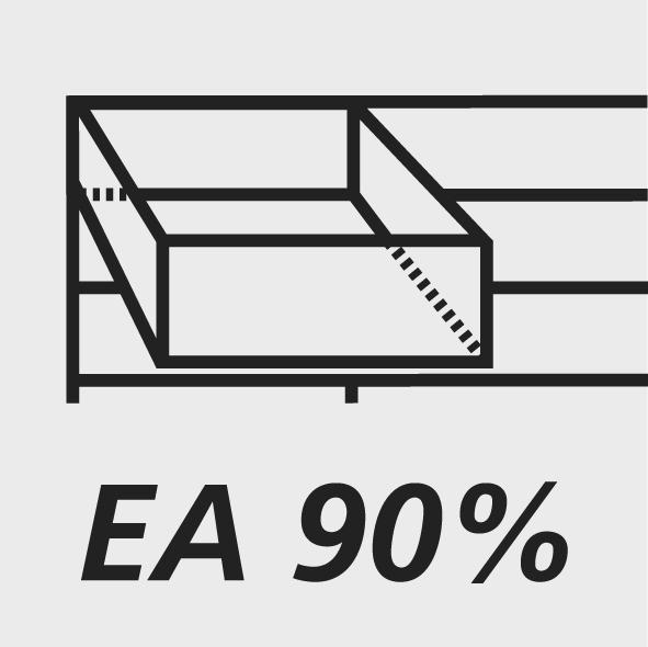 • Schubladen: Auszug ca. 90 %, Schlitzwände und Lochböden zur individuellen Unterteilung