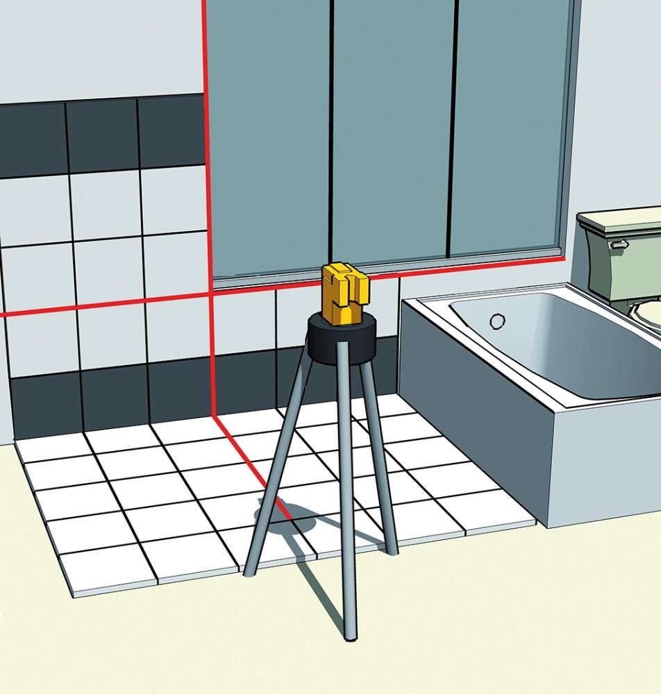 • Selbstnivellierend, projiziert je eine lange und gut sichtbare horizontale und vertikale Laserlinie