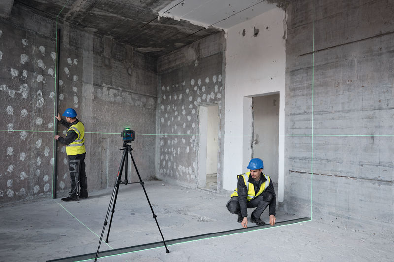 Linienlaser GLL 80-33 G, Der GLL 80-33 G Professional ist ein intuitiver Linienlaser für genaueste Ausrichtung und Nivellierung. Dank IP65-Schutz und einem langlebigen, gummiverstärkten Gehäuse und Laserfenstern ist er geschützt gegen Staub und Wasser, so dass du selbst auf den härtesten Baustellen sorgenfrei arbeiten kannst. Das neue Tastaturdesign erlaubt eine leichte Wahl aller Laserlinien und bietet einen zusätzlichen Energiesparmodus für eine längere Batterielaufzeit. Darüber hinaus bietet die Dual Power-Funktion die Flexibilität, zwischen dem Li-Ion-Akku BA 3.7V 3.0Ah XL und Alkali.-Batterien Typ AA zu wechseln, so dass du dir keine Gedanken über Ausfallzeiten wegen einer leeren Batterie machen musst. Der BA 3.7V 3.0Ah XL kann während der Verwendung geladen werden und sorgt für einen nahtlosen Arbeitsablauf ohne Stromunterbrechungen. Der GLL 80-33 G ist ideal für verschiedenste Anwendungen, einschließlich das Aufstellen von Trockenwänden, Ausrichten von Fensterrahmen und Montieren von Zwischendecken. Die große Batterieanzeige ermöglicht eine mühelose Überwachung des Ladeniveaus, während drei 360°-Laserlinien zeitgleich waagerechte und senkrechte Nivellierung erlaubt - so sparst du Zeit und Mühe. Der Linienlaser erkennt automatisch den optionalen Laser-Empfänger LR 7 Professional. Dadurch kannst du sofort mit der Arbeit beginnen und den Arbeitsbereich auf bis zu 80 Meter erweitern. Die hellgrünen Laserlinien bieten eine viermal bessere Sichtbarkeit als rote Linien für leichteres Nivellieren - egal an welchem Arbeitsort. 4 x 1,5 V-LR6-Batterie (AA). Adapter für Alkali-Batterie. Universalhalter LB 10 Professional. Laserzieltafel. Tasche
