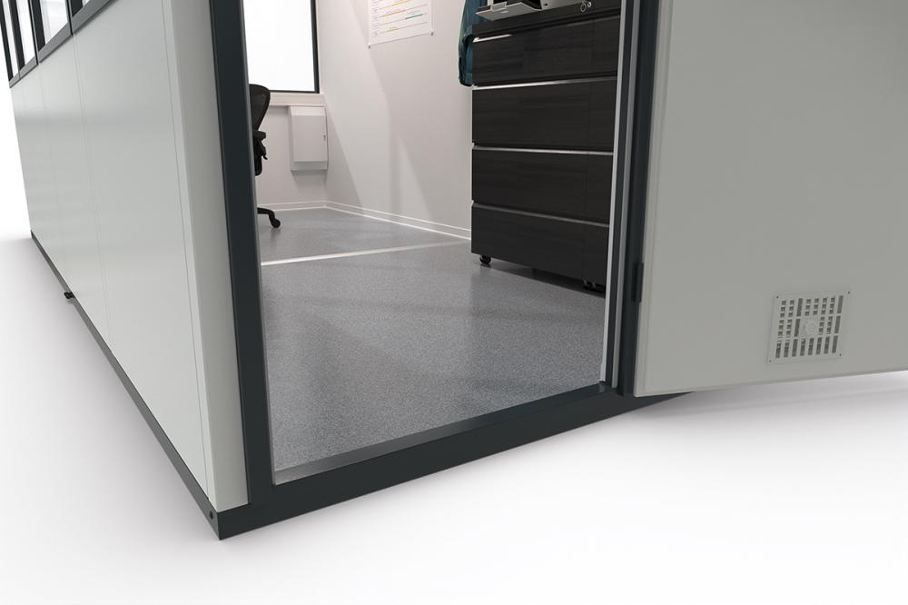 Dieses Raummodul schafft schnell temporär oder dauerhaft Arbeitsplätze. Es kann als Einzelbüro, Teambereich, Besprechungsraum oder Werkstatt dienen.