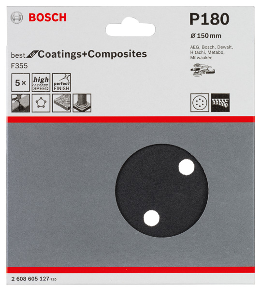 PRO F355 Schleifblatt, 150 mm, G180, 5-tlg.