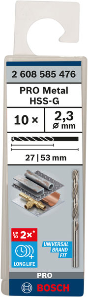PRO Metal HSS-G Spiralbohrer, 2,3 x 27 x 53 mm, 10-tlg.