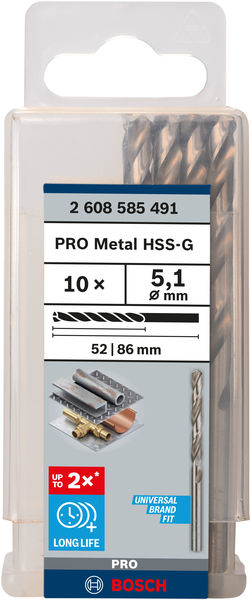PRO Metal HSS-G Spiralbohrer, 5,1 x 52 x 86 mm, 10-tlg.