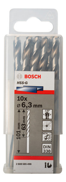 PRO Metal HSS-G Spiralbohrer, 6,3 x 63 x 101 mm, 10-tlg.