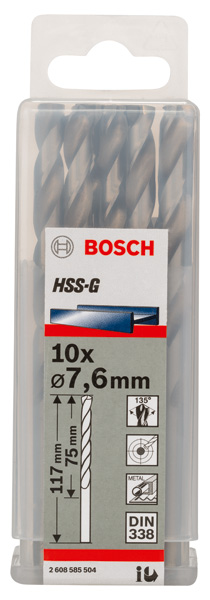 PRO Metal HSS-G Spiralbohrer, 7,6 x 75 x 117 mm, 10-tlg.