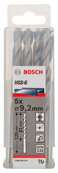 PRO Metal HSS-G Spiralbohrer, 9,2 x 81 x 125 mm, 5-tlg.