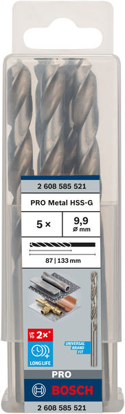 PRO Metal HSS-G Spiralbohrer, 9,9 x 87 x 133 mm, 5-tlg.