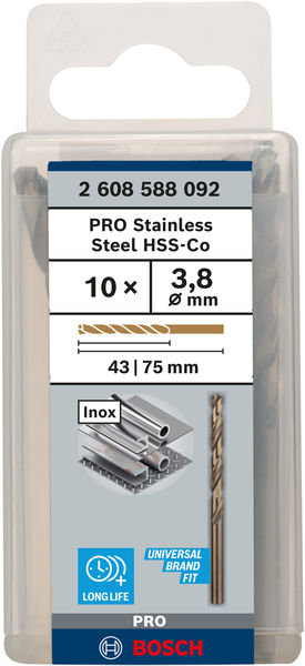 PRO Stainless Steel HSS-Co Spiralbohrer, 3,8 x 43 x 75 mm, 10-tlg.