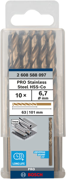 PRO Stainless Steel HSS-Co Spiralbohrer, 6,7 x 63 x 101 mm, 10-tlg.