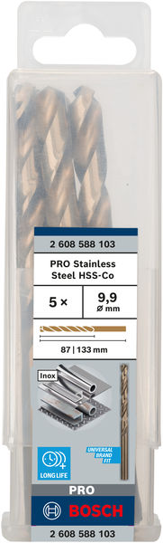 PRO Stainless Steel HSS-Co Spiralbohrer, 9,9 x 87 x 133 mm, 5-tlg.