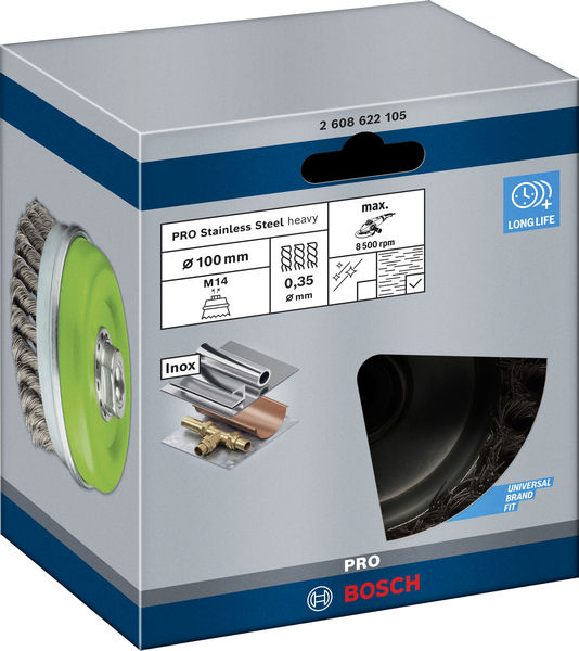 Lange Lebensdauer beim Reinigen von Edelstahl! Gezopfter Premium-Draht für intensive Reinigung Bist du Metallarbeiter und musst Edelstahl und Nichteisenmetalle reinigen? Die PRO Stainless Steel heavy Topfbürste ist ein robustes Zubehör, das für diese Aufgabe geeignet ist. Sie arbeitet schnell und sorgt für saubere, raue Oberflächen – immer und immer wieder. Die PRO Stainless Steel heavy Topfbürste ist eine langlebige Ergänzung für jede Metallwerkstatt, in der Schweißnähte, starker Rost, alte Farbe, Lack und Unterbodenschutz von Edelstahl- und Nichteisenmetalloberflächen entfernt werden müssen. Wir haben die Topfbürste mit hochwertigem gezopftem Draht ausgestattet, damit du anspruchsvolle Reinigungsarbeiten erledigen kannst – immer und immer wieder. Verwende Topfbürsten mit dickerem Draht für ein schnelles, grobes Finish und solche mit dünnerem Draht für eine glattere Oberfläche.