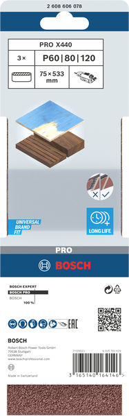PRO X440 Schleifband, 75 x 533 mm, G60, G80, G100, 3-tlg.