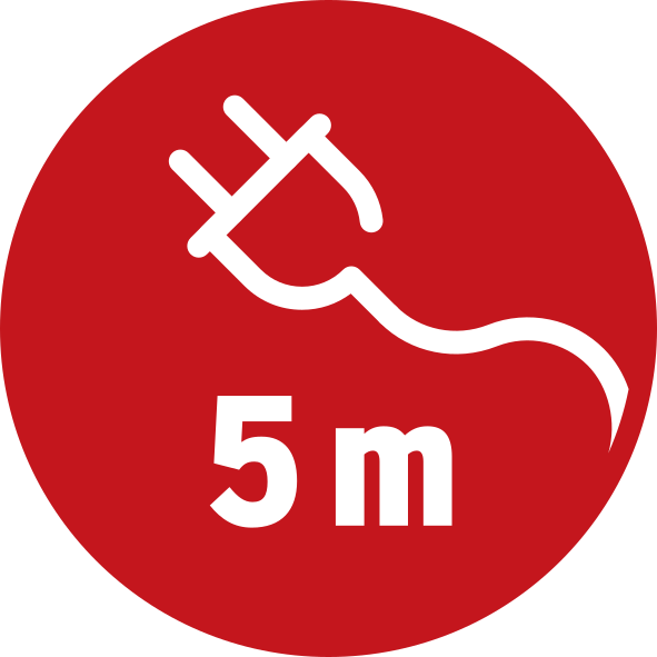 - Mit fest installiertem 5m Kabel (H07RN-F2X1,0)