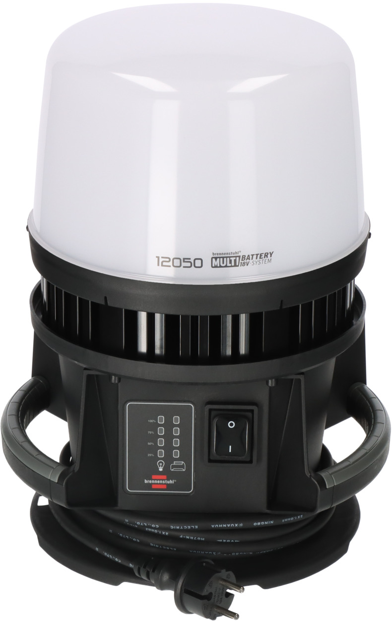Der leuchtstarke Multi Battery LED 360° Hybrid Baustrahler von Brennenstuhl eignet sich ideal für den anspruchsvollen und robusten Einsatz im Innen- und Außenbereich. Durch die Schutzart IP54 ist die Arbeitsleuchte mit Rundumbeleuchtung bestens vor Staub und Spritzwasser geschützt. Dank dem Multi Battery 18V System ist es möglich, auf das Akku-System seiner Wahl zurückzugreifen - und das im High Performance Bereich. Der leistungsstarke Arbeitsstrahler sorgt für noch mehr Effizienz durch Kompatibilität zu elf 18V Akku-Systemen der Powertool-Hersteller Bosch Professional, Dewalt, Einhell, Fein, Festool, Flex, Hikoki, Makita, Metabo CAS, Milwaukee und Würth. Ganz egal also für welches Akku-System sich der Profi entschieden hat, das Brennenstuhl Multi Battery 18V System ermöglicht eine volle Kompatibilität mit den führenden Akku-Technologien. Brennenstuhl ist Teil von AMPShare - Powered by Bosch Professional. Die AMPShare Akku-Allianz ermöglicht die Verwendung der Brennenstuhl Arbeitsstrahler mit den 18V Akkus von Bosch Professional. Der 360 Grad Baustrahler mit innovativer Schnittstellen-Technologie überzeugt außerdem durch folgende Eigenschaften: