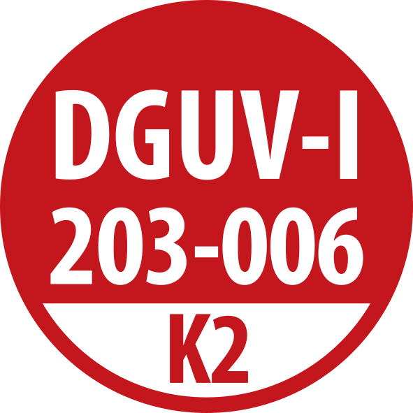 - Betriebsmittel der Kategorie 2 (K2 DGUV 203-005): Einsatz für den rauen Betrieb mit hohen mechanischen, physikalischen und chemischen Einwirkungen