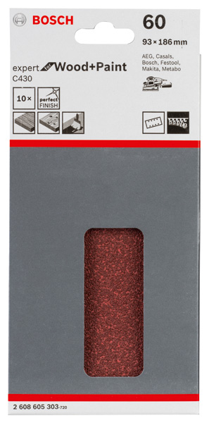 Schleifblatt C430, 93 x 186 mm, 60, 8 Löcher, 10er-Pack