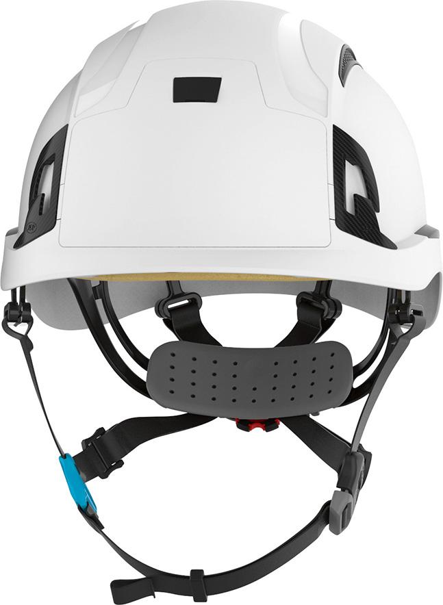 • 4-Punkt Kinnriemen, der so konzipiert ist, dass er auch unter Krafteinwirkung sicher bleibt und die Sicherheit bei einem Sturz maximiert
