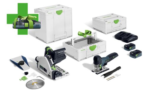 Unser Meisterstück. Entscheidend verbessert. Jetzt mit einzigartigem KickbackStop.Stärken und NutzenKickbackStop vermindert die Verletzungsgefahr durch einen Rückschlag beim Sägen oder beim Eintauchen in das WerkstückGeballte Durchzugskraft und bis zu doppelt so schneller Arbeitsfortschritt bei erhöhter Sägeblatt-StandzeitBürstenloser EC-TEC Motor kombiniert mit Lithium-Ionen Akkus für maximale SchnittleistungDeaktivierung des KickbackStops für einzelne Sägeschnitte möglichSäge-System der Extraklasse dank einer Vielzahl an ZubehörAnwendungsschwerpunktePräzise Tauchschnitte bis 55 mm MaterialstärkePerfektes Ablängen von Innentüren – Führungsschiene mit TauchsägeSägen von Aussparungen in Türen und KüchenarbeitsplattenHerstellen von Dehnungsfugen in Parkettböden sowie SchattenfugenZuschnitt von PlattenmaterialHinweisLieferumfang 2 x Akkupack BP 18 Li 5,0 ASI, Kreissägeblatt WOOD FINE CUT HW 160x1,8x20 WD42, Splitterschutz, Sichtfenster, Staubfangbeutel, Innensechskantschlüssel SW 5, Systainer SYS3 M 437Leistung ohne Kompromisse dank dem Festool Service. Der direkte, praktische und umfassende Service für Sie und Ihr Werkzeug.--> Mehr erfahren
