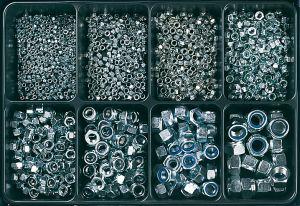 Ausführungen: H1: gerade H2: 45°-Winkel H3: 90°-Winkel • Oberfläche: verzinkt • Inhalt: ca. 225 Teile H1: M 6; M 8; M 10; M 6x1; M 8x1; M 10x1 H2: M 6x1; M 8x1; M 10x1 H3: M 6x1; M 8x1; M 10x1