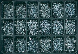 • Senkkopf • Oberfläche: verzinkt, gelb passiviert • Antrieb: PZD • Inhalt: ca. 1730 Teile 3,0x12*; 3,0x16*; 3,0x12; 3,0x16; 3,0x20; 3,5x20; 3,5x25; 3,5x30; 4,0x30; 4,0x40; 4,5x35; 4,5x40; 4,5x45; 5,0x40; 5,0x50; 5,0x60; 6,0x80. * 5-mm-Kopf.