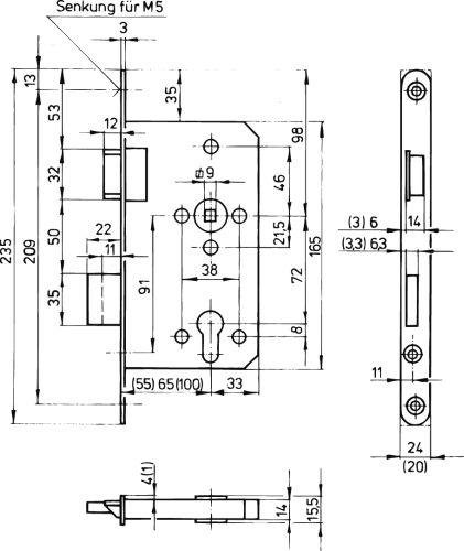 Einsteckschloss 1007 P für Stahl- und FH-Türen