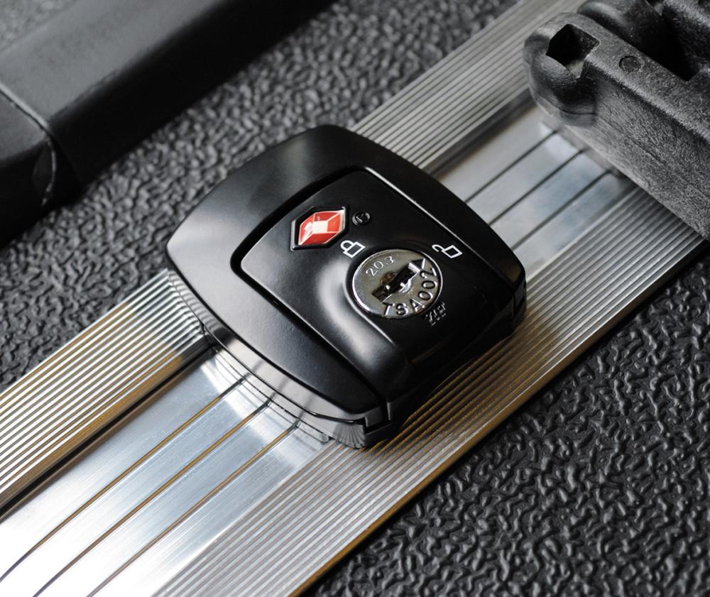 Hinweis: TSA-Schlösser können am Flughafen mit einem Generalschlüssel geöffnet werden, dies verhindert ein gewaltsames Öffnen bei der Zollabfertigung.